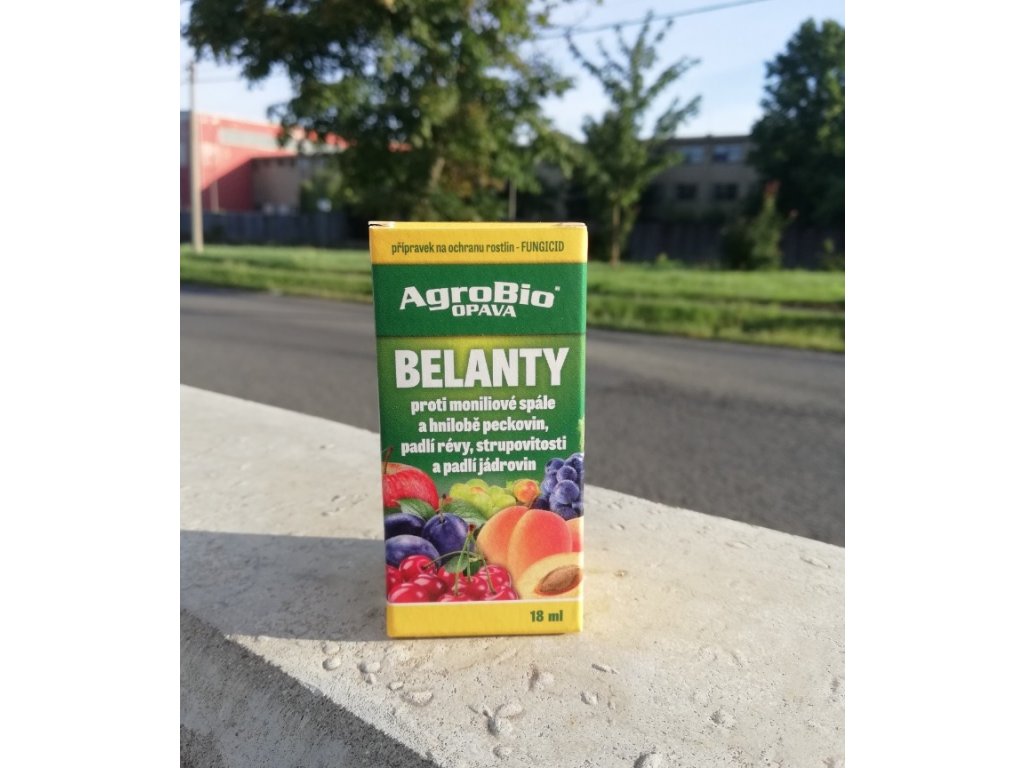 Fungicidní přípravek Belanty proti moniliové spále a hnilobě broskvoní, meruněk, třešní, višní a slivoní a proti padlí révy a dalším chorobám jabloní, hrušní nebo brambor.