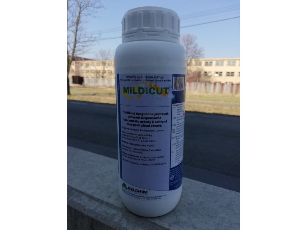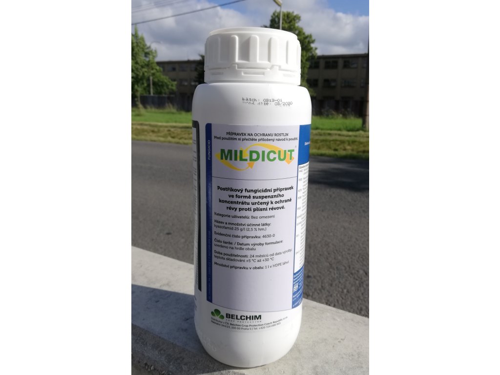 Účinná látka přípravku patří do nové chemické skupiny cyanoimidazolů a vyznačuje se silným účinkem proti houbám z rodu Oomycetes (do této skupiny patogenů patří různé druhy plísní - perenospora révy vinné, plíseň bramborová, plíseň okurková atd.). V porovnání s jinými přípravky má MILDICUT jedinečný mechanizmus působení - působí jako inhibitor tvorby quinonu (Qil skupina) ve vnitřní membráně mitochondrií patogena. Díky složení přípravku (cyazofamid + disodium fosfonát) se účinná látka dostává do listových pletiv a poskytuje spolehlivou ochranu novým přírůstkům i hroznům a to po dobu 10-14 dnů. Obě dvě složky přípravku se doplňují : cyazofamid ničí spóry (má sporicidní účinek) a disodium fosfonát má antisporulační účinek - díky tomu se snižuje množství aktivních spór a tím i následná infekce v porostu (stop efekt). Přípravek je odolný vůči srážkám (už 30 minut po aplikaci) a proto je ho možné použít v době s nepříznivými klimatickými podmínkami pro aplikaci. Po aplikaci přípravku MILDICUT se projevuje viditelné ozelenění (“green efekt”). Díky tomu dokáže réva přijímat a asimilovat potřebné živiny zvyšující kvantitu i kvalitu úrody (zvyšuje cukernatost) a na konci vegetace tak zabezpečit lepší kondici a připravenost révy na zimní období.