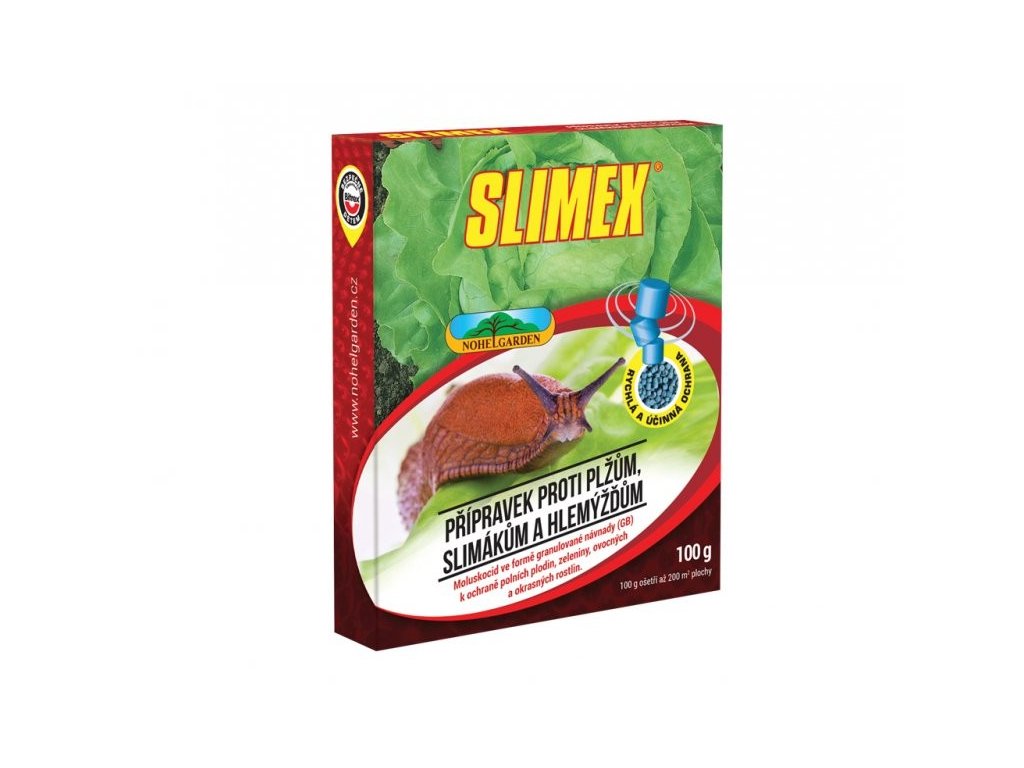 Moluskocid Slimex ve formě granulované návnady k ochraně polních plodin, zeleniny, ovocných, okrasných a skleníkových rostlin proti slimákům, plžům a hlemýžďům. Způsobuje znehybnění slimáků. Potom následuje jejich uhynutí. Nejlepších výsledků je dosaženo aplikací v průběhu mírně vlhkého počasí, kdy jsou slimáci nejaktivnější. Vystačí na 200 m2.