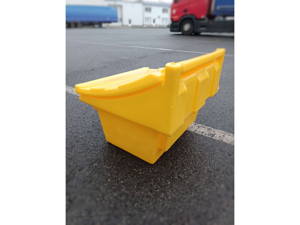 Posypový zásobník žlutý na 100 kg zimního posypu.
